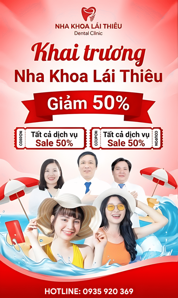 Với định hướng phát triển bền vững, Nha Khoa Lái Thiêu liên tục cập nhật công nghệ mới trong implant, chỉnh nha – niềng răng, dán sứ veneer, bọc răng sứ, nhổ răng khôn và các dịch vụ điều trị – thẩm mỹ khác. Đội ngũ quản lý và bác sĩ luôn đặt sự hài lòng và nụ cười khỏe đẹp của khách hàng làm trọng tâm trong mọi hoạt động.